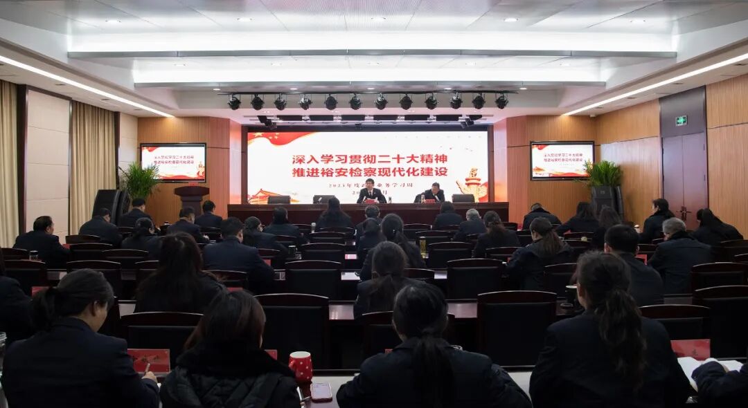 为进一步加强检察队伍建设,不断提高全院干警思想政治素质和检察业务水平,更好推动检察工作现代化发展,1月29日,兔年上班第二天,裕安区人民检察院开展“深入学习贯彻二十大精神,推进裕安检察现代化建设”政治业务学习周活动。