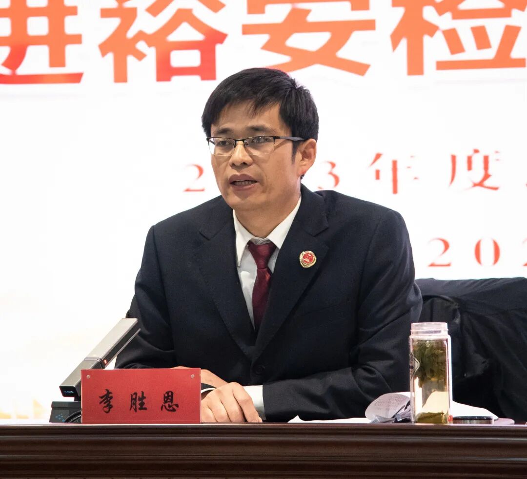 (△该院党组副书记、副检察长李胜恩主持会议并作动员讲话)